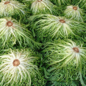 5. salata frisee – are frunze mari și foarte dantelate, de obicei de culoare verde intens, deși există și varietăți ale căror frunze sunt tivite cu roșu; gustul este ușor piperat, cu accente de nucă