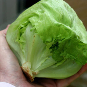 2. salata cu frunze crocante (iceberg) – seamană la aspect cu varza, cu un gust mai domol către fad; frunzele crocante sunt mai mult apreciate pentru textură decât pentru gust