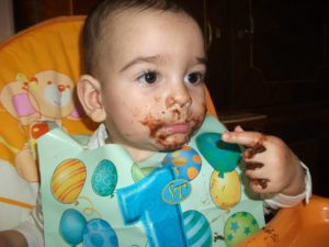 Victor-Daniel a implinit un anisor Victor a degustat o briosa facuta special pentru aniversarea lui, cu ingrediente adaptate varstei (faina de ovaz, ou, stafide rasnite, ulei de masline, carob si banana), pe care a savurat-o dupa cum se si vede ;-).