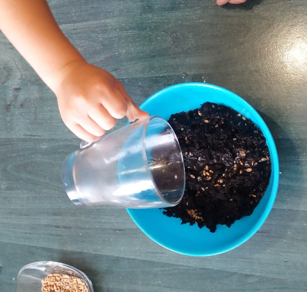 Astăzi am pus grâu la încolțit. Zilele de vacanță sunt mult mai plăcute când facem din joacă o activitate educativă. Am vorbit despre grâu și proprietățile saleiar când activitatea a fost gata am citit împreună și o poveste simpatică despre cum se cultivă grâul și cât de importantă este ploaia pentru ca plantele să crească şi să rodească.
