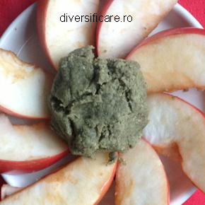 1. MICUL DEJUN: piure de fructe (banană și un măr mic) cu lapte vegetal, fulgi de ovăz și semințe râșnite.
