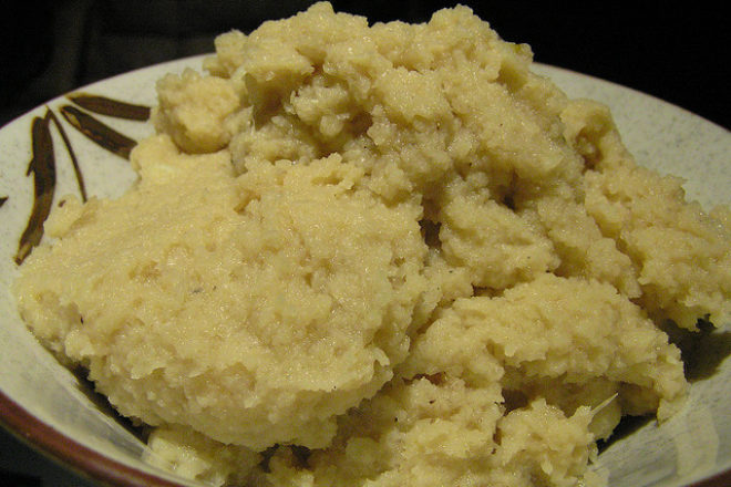 Rezultă o pastă deschisă la culoare foarte gustoasă, adică un pate de conopidă numai bun de întins pe o felie de pâine cu maia.