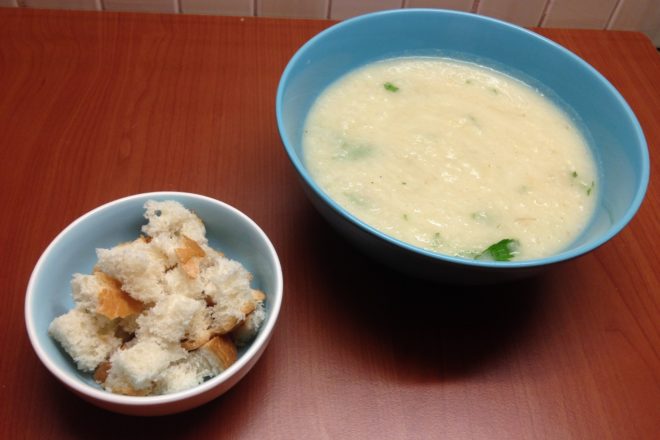 Serviți supa cremă de țelină caldă și în prezența crutoanelor. Poftă bună!