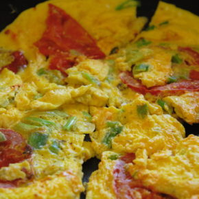 Omletă cu roșii, ceapă verde și pătrunjel