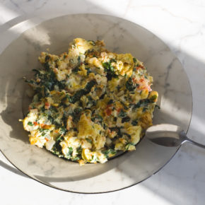 Omletă cu spanac şi suc de roşii